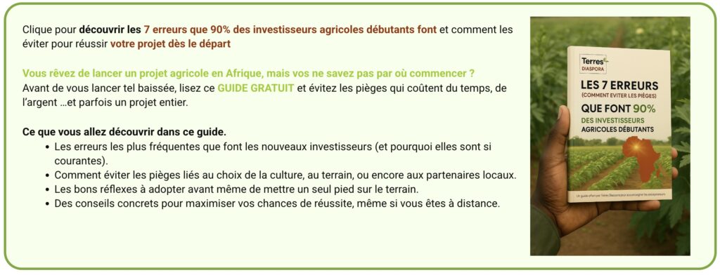 Avant d’investir, lis ce guide gratuit : « Les 7 erreurs que font 90 % des investisseurs agricoles débutants », tu éviteras des pièges fréquents et gagneras un temps précieux. Clique ici pour télécharger le guide gratuitement